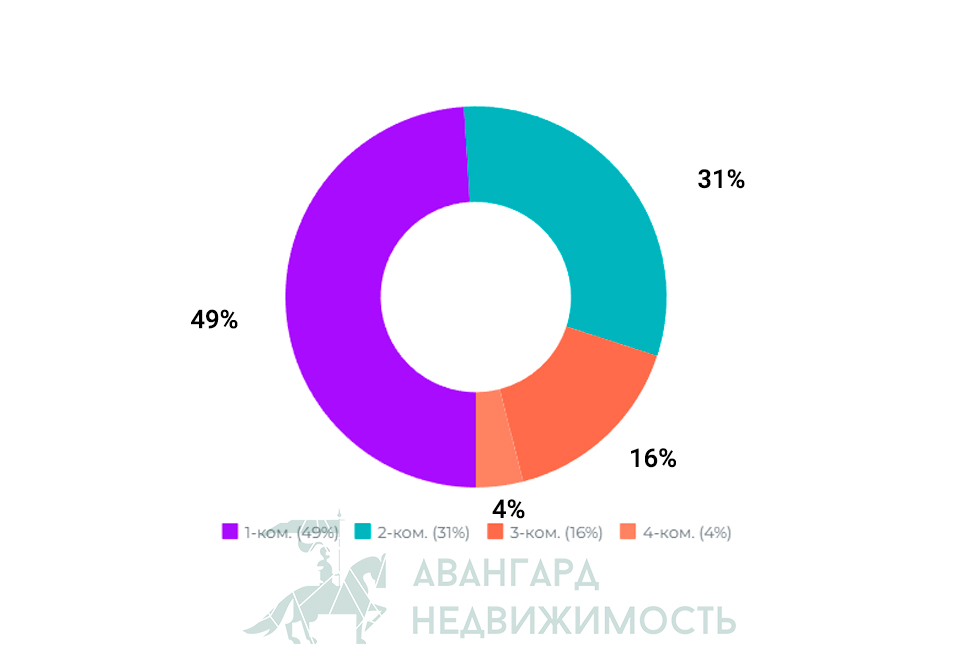 Эквивалент долларов США по курсу НацбанкаВ октябре 49% всех сделок прошло с 1-комнатными квартирами. Эта ситуация считается типичной для рынка недвижимости Минска.