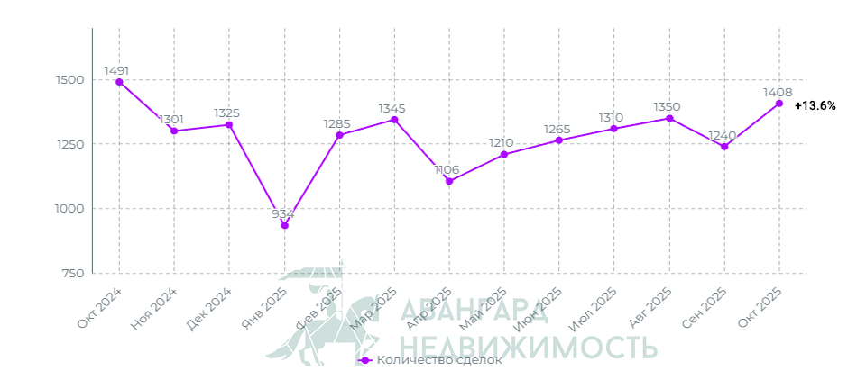 Октябрь на рынке недвижимости столицы прошел под знаком роста. Квартиры продолжают дорожать, а количество сделок стабильно высокое. На дату подготовки статьи в октябре в Минске прошло 1408 сделок с недвижимостью. Это на 13.6% больше, чем в сентябре. Это пока рекордное значение в течение всего 2025 года. О других итогах октября в нашем традиционном аналитическом обзоре.